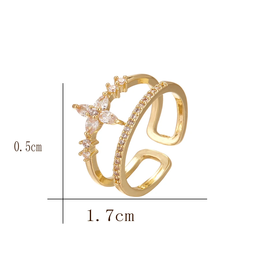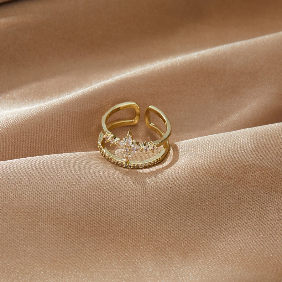 Fleepmart Zircon Double Cross Shape Women Gold Plated Stainless Steel Luxury Wedding Rings Aesthetic Jewerly