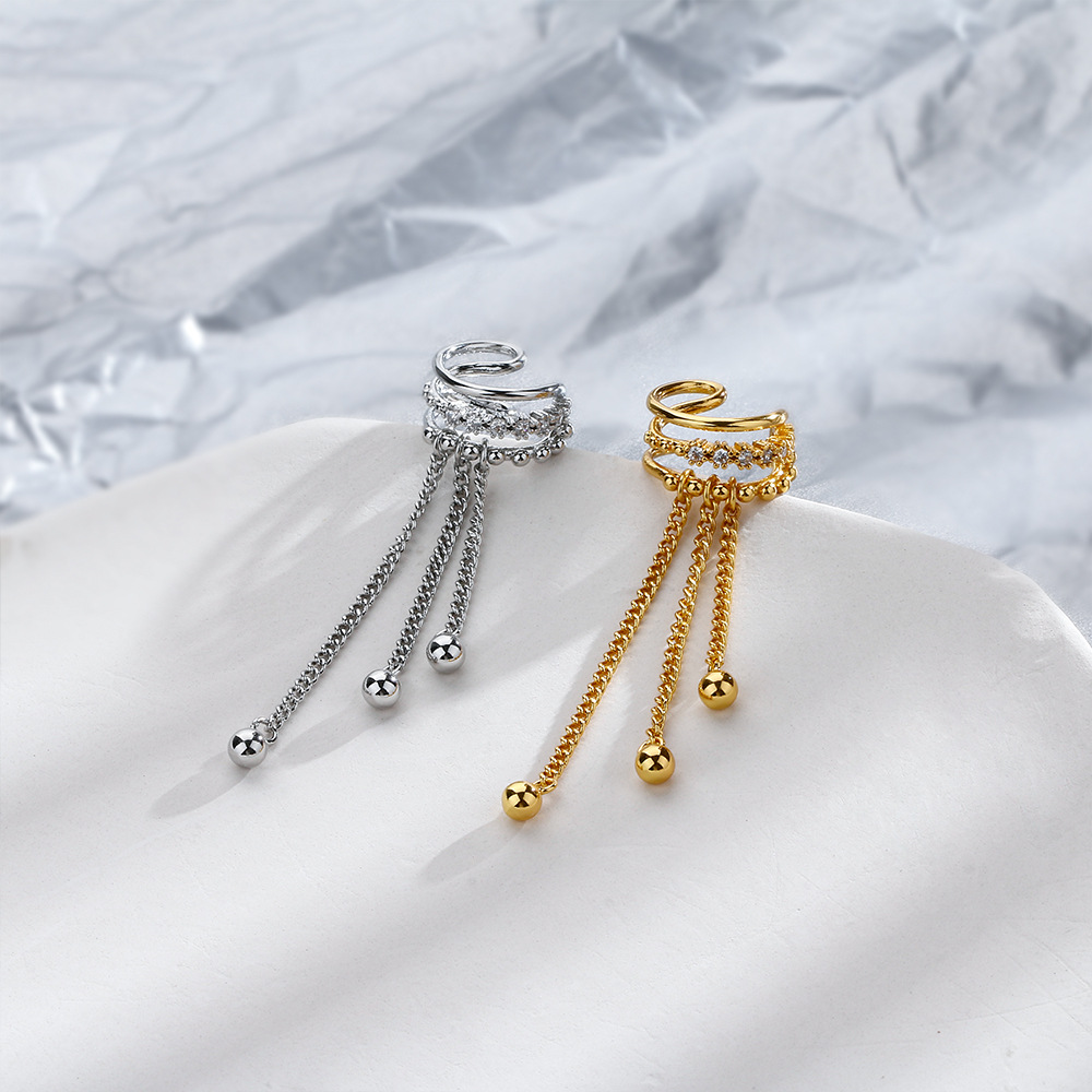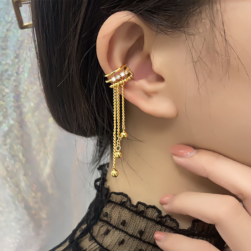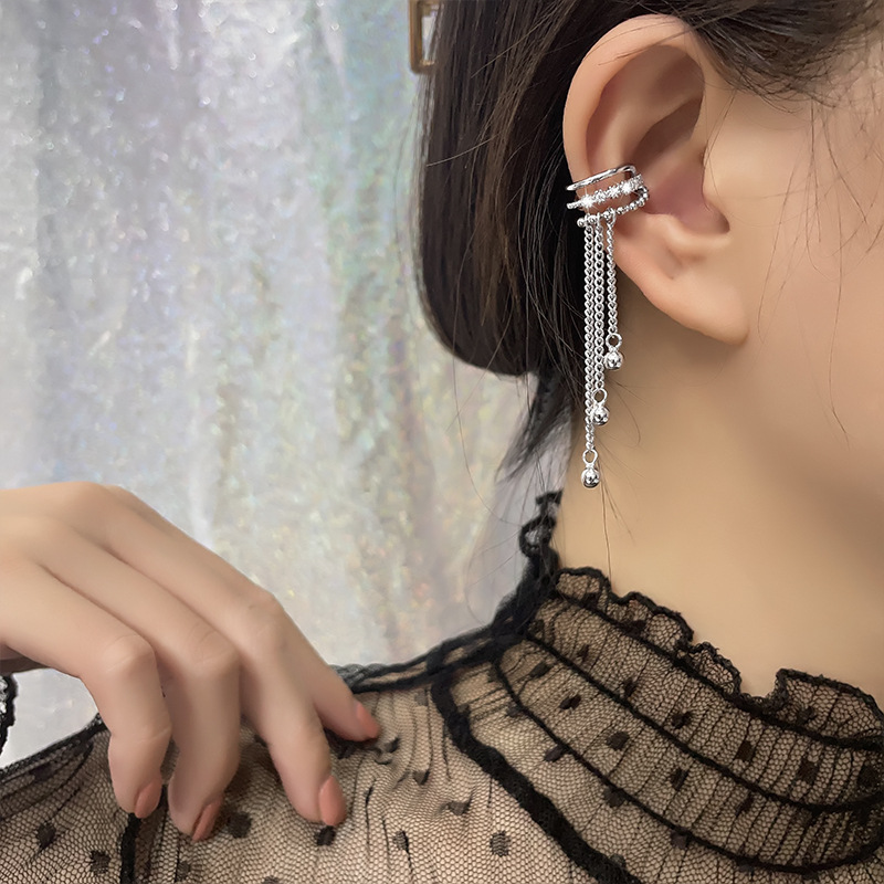 fleepmart Zircon Long Tassel Clip Earrings For Women Shiny Rhinestone Bead Chain Fake Piercing Earbone Ear Cuff Jewelry Gifts