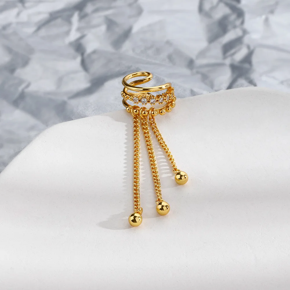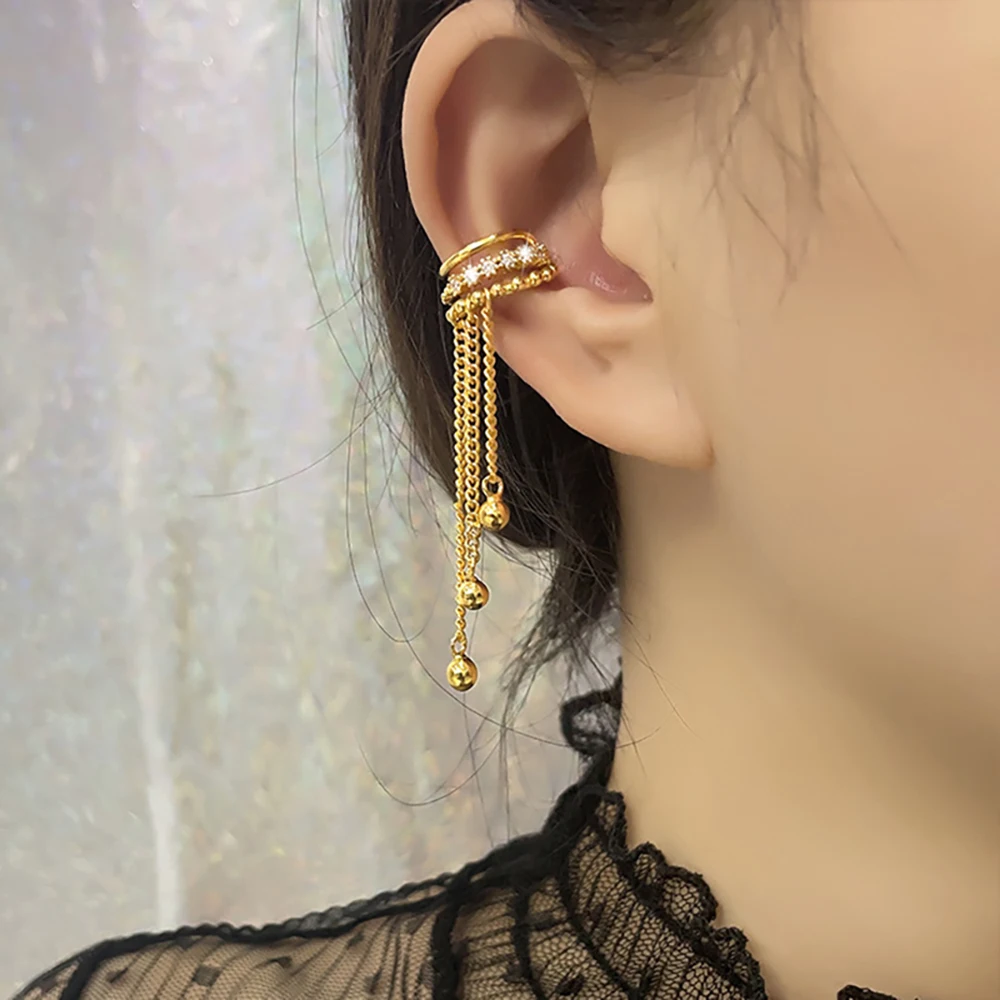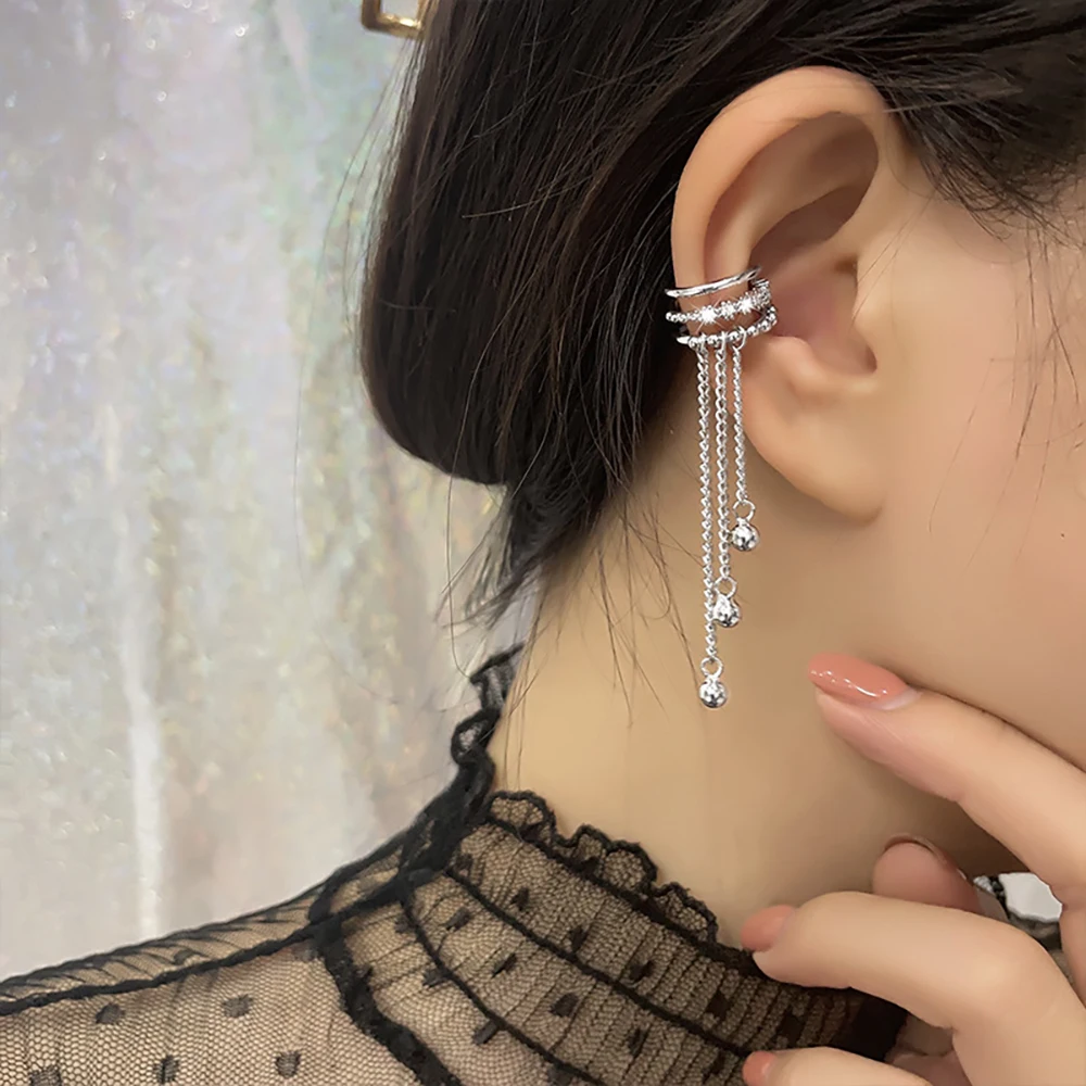 fleepmart Zircon Long Tassel Clip Earrings For Women Shiny Rhinestone Bead Chain Fake Piercing Earbone Ear Cuff Jewelry Gifts