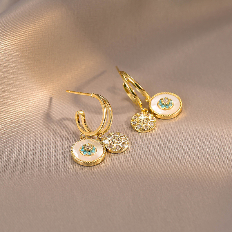Fleepmart Zircon Star Flower Shell Round Pendant Gold Dangle Earrings For Women Personality Daughter Of The Sea Party Jewelry