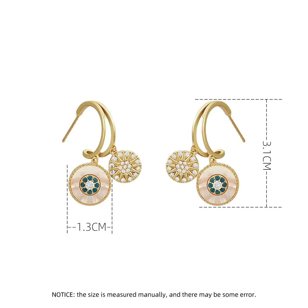 Fleepmart Zircon Star Flower Shell Round Pendant Gold Dangle Earrings For Women Personality Daughter Of The Sea Party Jewelry