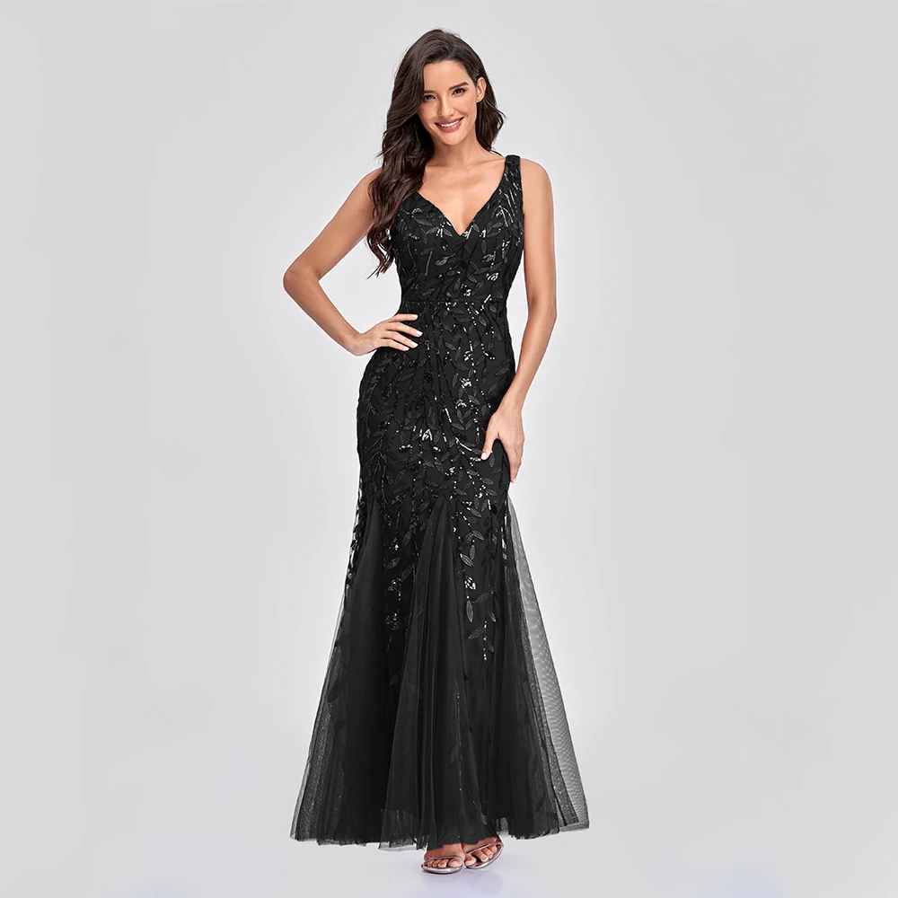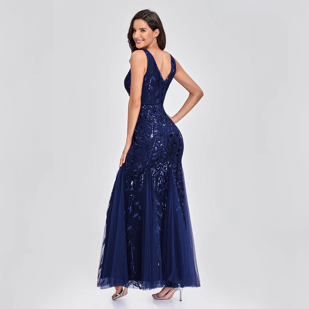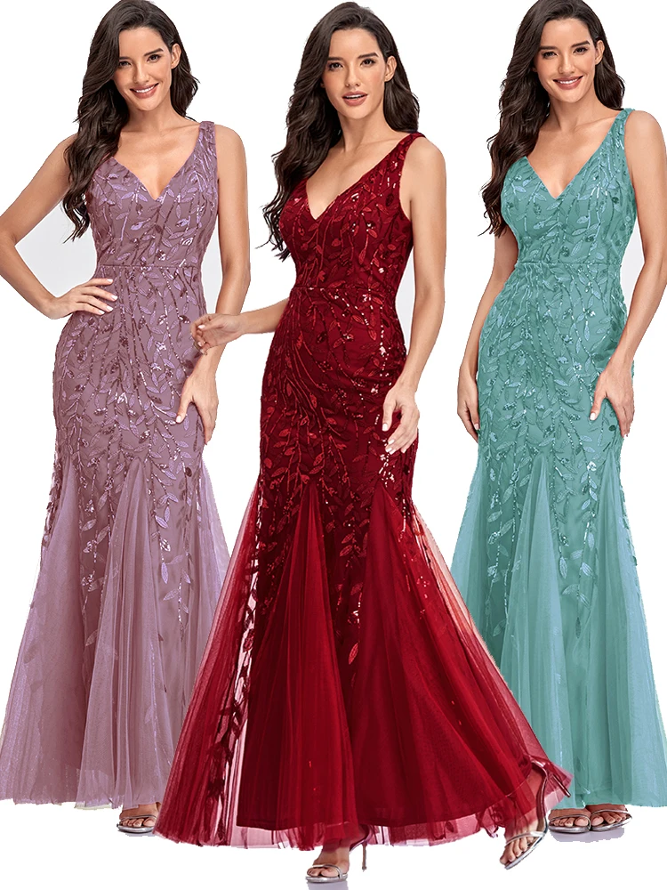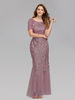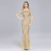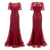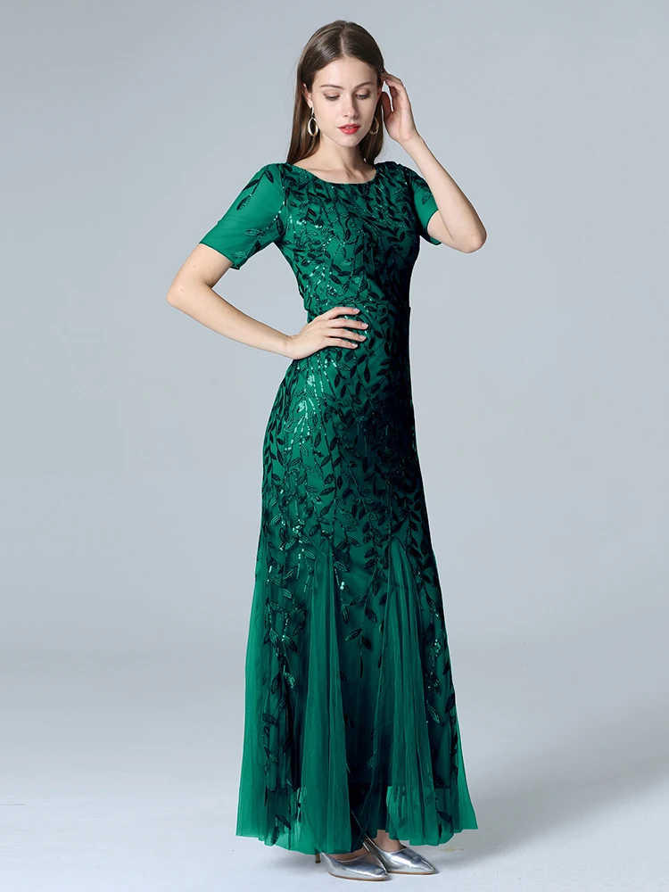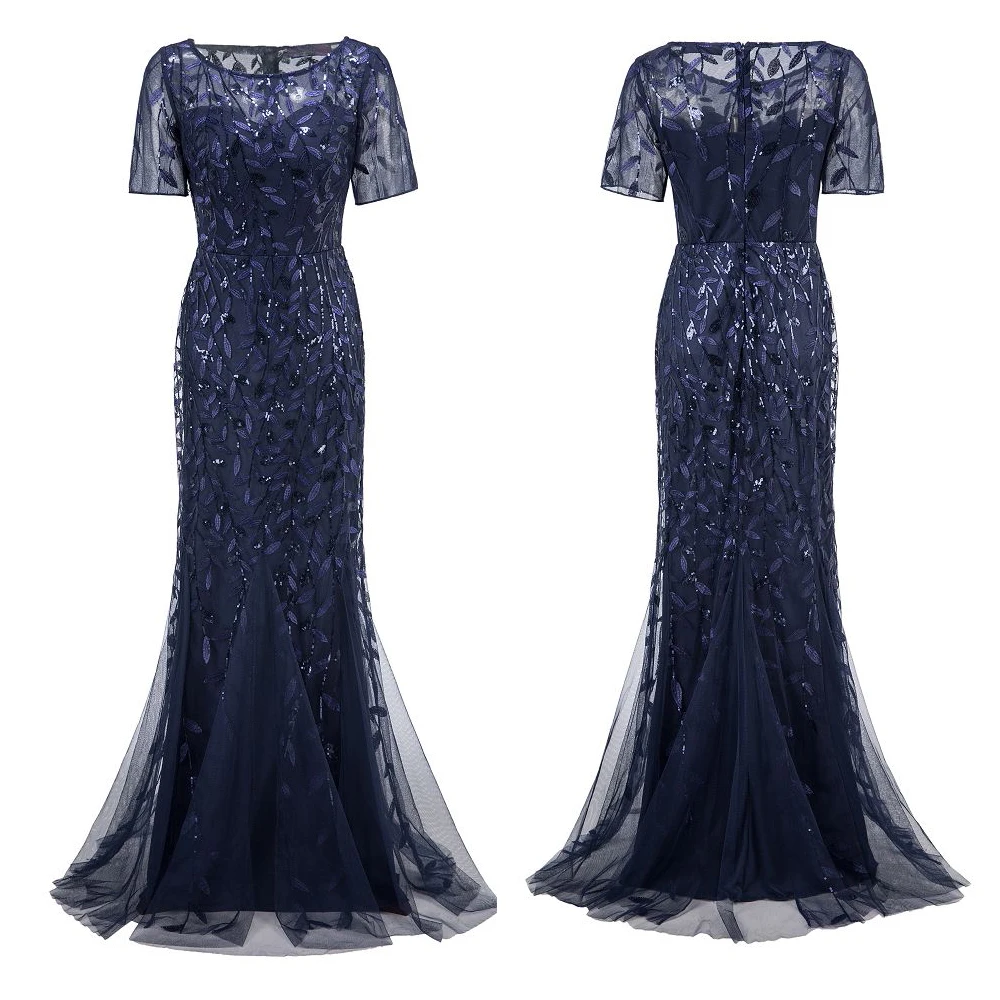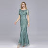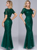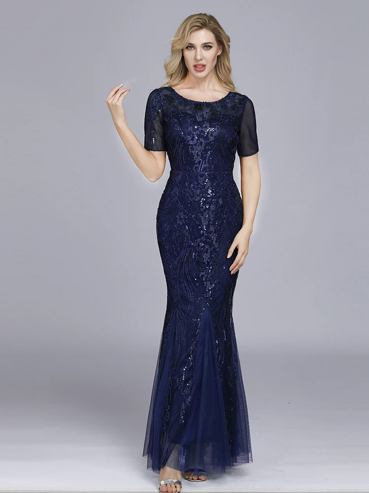 Flepmart Embroidered beaded Fabric Prom Dresses Sugar Color O-Neck Short Sleeve Elegant Little Mermaid Dresses Formal Party Gowns 2021