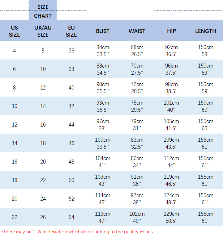 *Every dress has a unique size chart,please compare your measurement to the measurements provided in the size chart.And do not measure with clothing except undergarments.