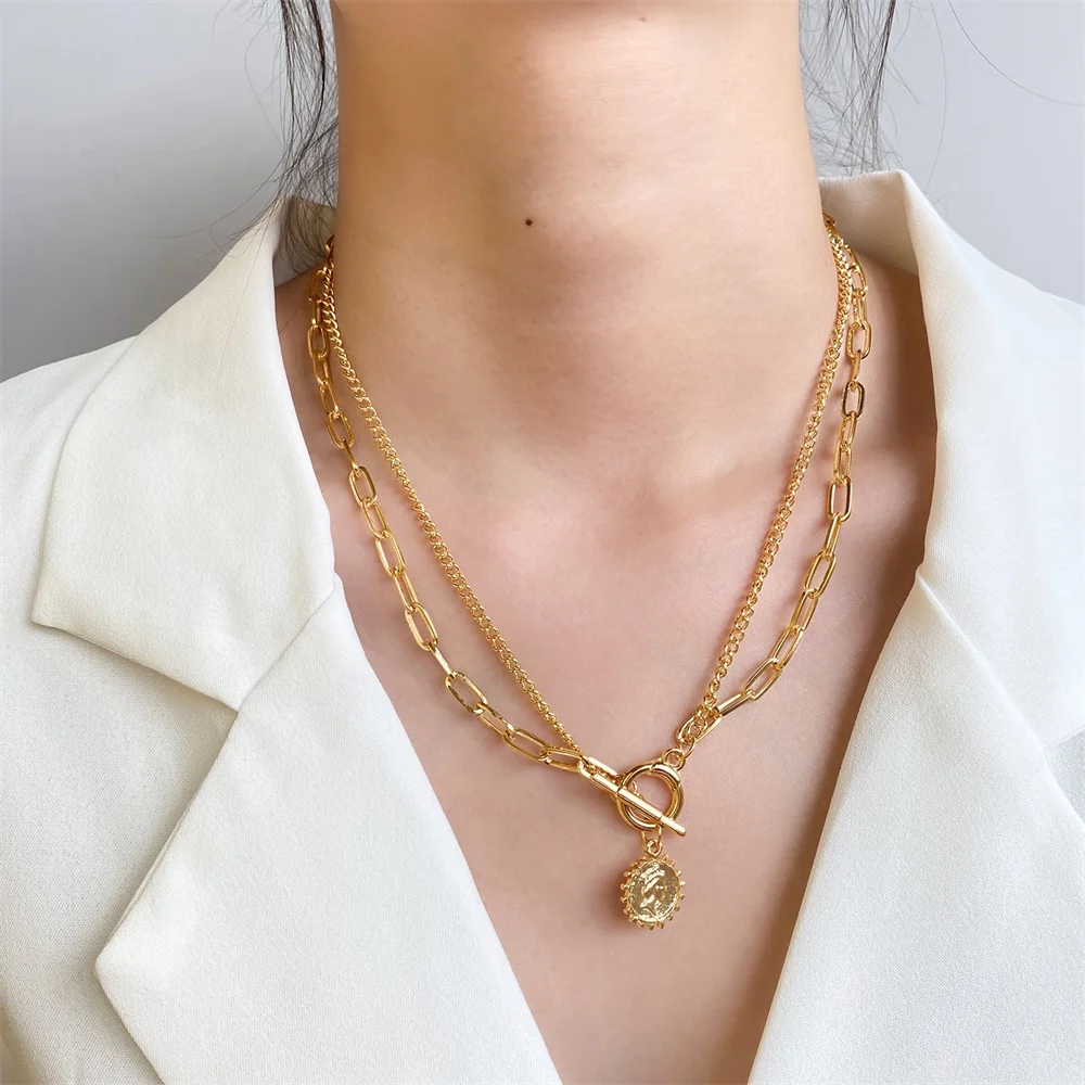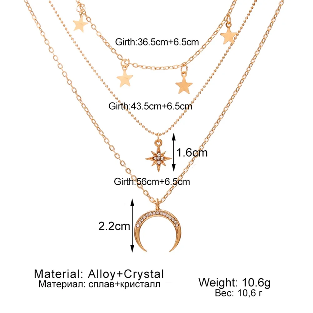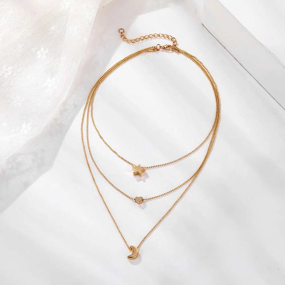 Fleepmart Bohemian Gold Star Necklaces For Women Heart Flower Choker Pendant Necklace 2022 Ethnic Multilayer Female Fashion Jewelry