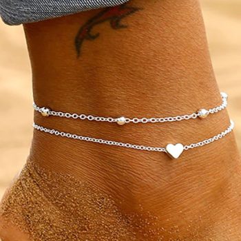 Fleepmart Anklet Bohemian Layered Heart Anklet 2022 Summer Beach Anklets On Foot Ankle Bracelets For Women Leg Chain