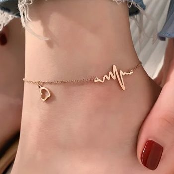 Fleepmart Stainless Steel Chain Heartbeat Anklets For Women Adjustable Foot Jewelry Anklet Summer
