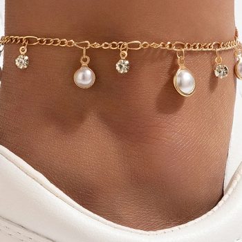 Fleepmart Colorful Rhinestone Anklets for Women Luxury Pearl Stone Foot Chain Barefoot Sandals Adjustable Bohemian Jewelry Gift