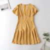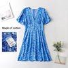 The dress is a nice light flowy shape and the blue is quite deep. I did not realise just how deep the front v is, but it's workable. The line for the waist is about my natural waist, but given I'm 175cm (5'9) that's to be expected. However, it wasn't at all too short. The material is not cotton, it's smooth but not shiny and it's a single layer. I got a size small and it's definitely a US small, not an Asian small.