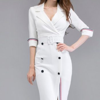 Fleepmart New Autumn Winter Formal Dress Elegant White Half Sleeve Slim Office Lady Work Dress