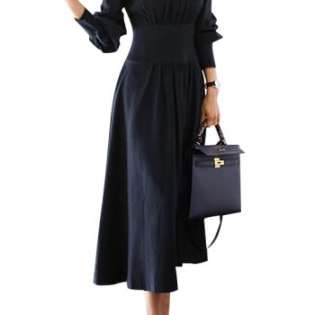 Fleepmart 2021 new Korean ladies social collar simple dress female Zippers Full Regular Natural Stand Sheath Office Lady