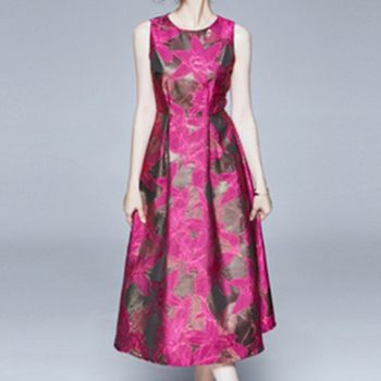 Fleepmart Retro Women Jacquard Flowers Dress Elegant Ladies Sukienki Empire Ropa Mujer Party Long Dress Vintge Print OL Tank Robe