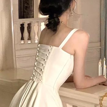 Fleepmart French Elegant White Strap Midi Dress Summer New Casual Evening Party Dress Women Beach Sleeveless Lace-up Red Dress