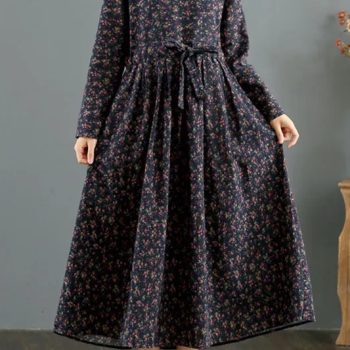 Fleepmart Women Autumn Cotton Linen Long Dress New Vintage Style Floral Print Loose Comfortable Ladies A-line Casual Dresses