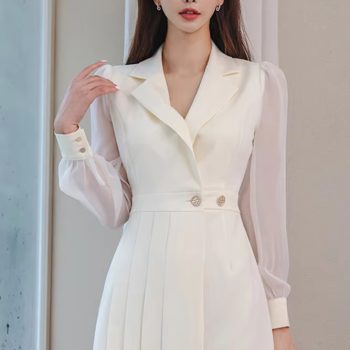 Fleepmart New Spring Work Style Formal Short Women Clothes Elegant Office Long Sleeve Slim Mini Dress