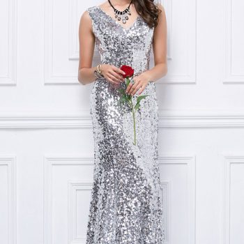 Fleepmart Evening Dress Sleeveless Tank Evening Dresses for Women 2021 V-neck Bling Sequin Robe De Soiree Elegant Mermaid Formal Gown