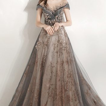 Fleepmart Evening Dress Double V-neck Half-sleeve Women Party Dresses A-line Elegant Robe De Soiree Bling Sequin Formal Gowns
