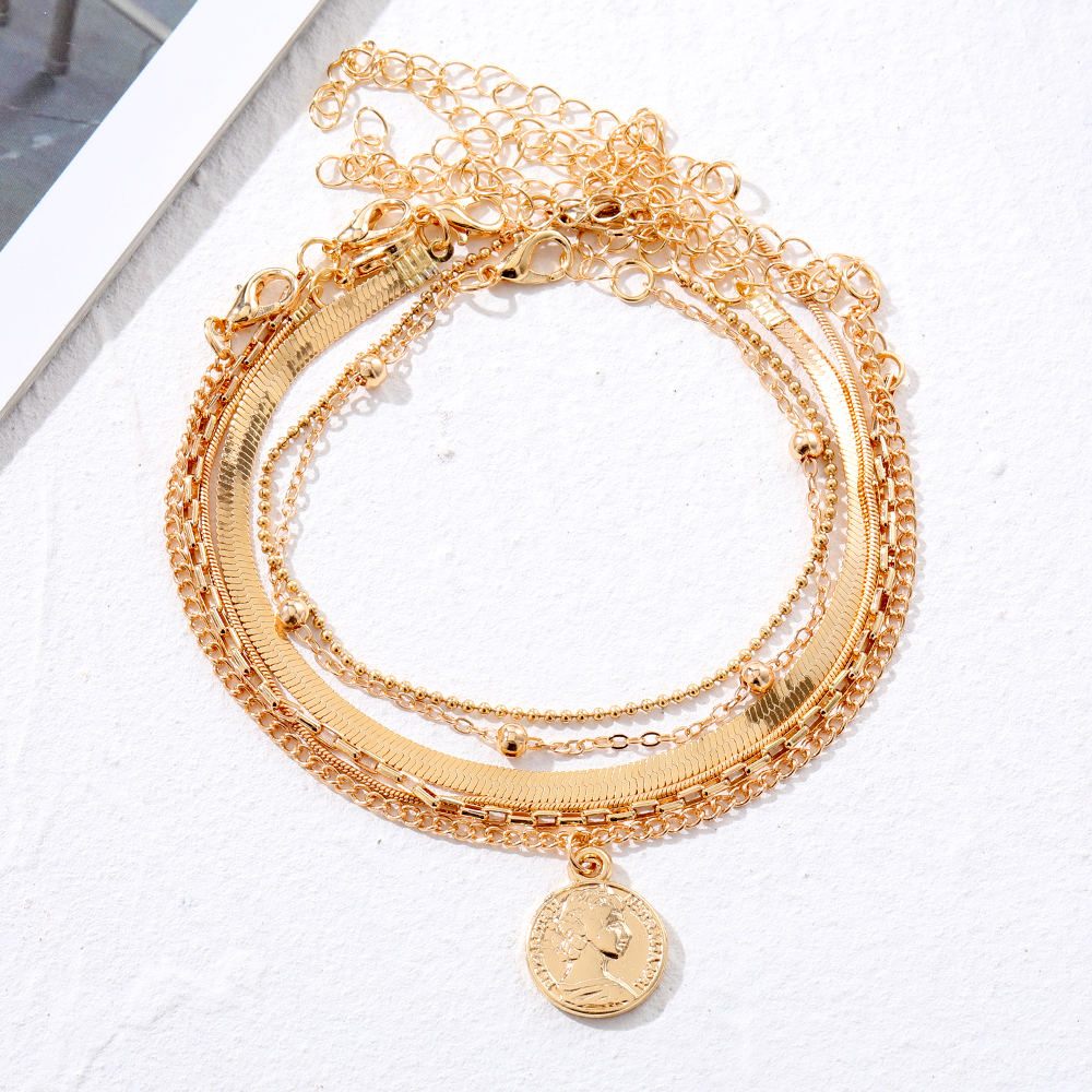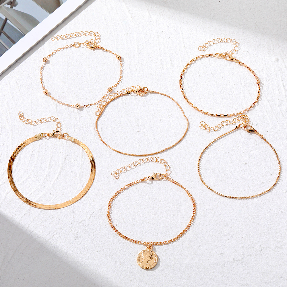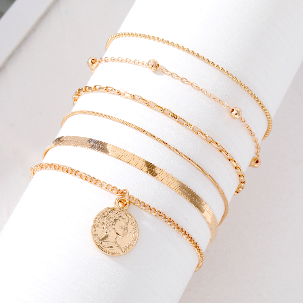 Fleepmart 6Pcs Chains Multilayer Metal Anklet for Women Bead Coin Pendant Anklet Bracelet On Leg Foot Fashion Jewelry Gifts