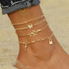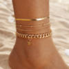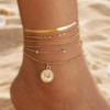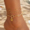 Fleepmart 6Pcs Chains Multilayer Metal Anklet for Women Bead Coin Pendant Anklet Bracelet On Leg Foot Fashion Jewelry Gifts