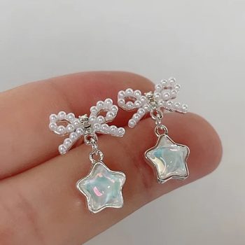 Fleepmart Sweet Blue Crystal Pentagram Stud Earrings For Women Girls Romantic Starry Sky Heart Pearl Bow Y2K Accessorie Fashion Jewelry