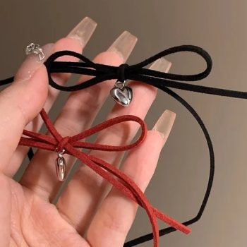 Fleepmart Y2K Bows Pendant Necklace Leather Chains Choker For Women Girls Elegant Braideds Bows Neckchain Jewelry