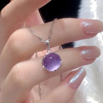 Fleepmart Elegant Simple Design Purple Round Crystal Pendant Necklace For Women Shiny Crystal Fashion Party Jewelry
