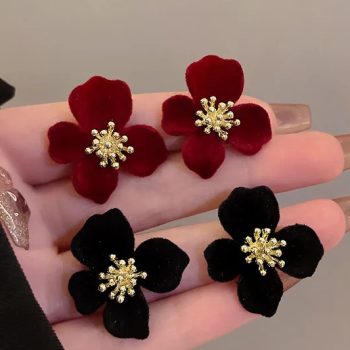 Fleepmart Vintage Wine Red And black Velvet Flower Stud Earrings For Women Fine Jewelry Gift Accessories