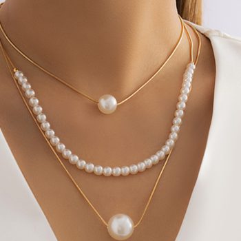 Fleepmart Multilayer Pearl Pendant Necklace For Women Punk Geometric Gold Color Thin Square Snake Chain Choker Party Jewelry