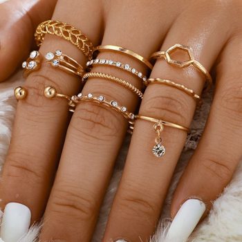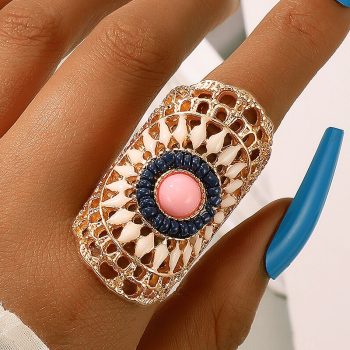 Fleepmart Colorful Beaded Big Joint Ring Sets for Women Men Hollow Out Geoemtry Gold Alloy Metal Bohemian Jewelry Anillo