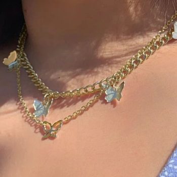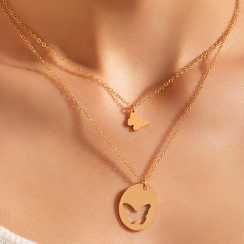 Fleepmart 2 Pcs/Set Women Fashion Necklaces Double Gold Color Butterfly Animal Pendant Clavicle Chain Charm Party Lady Jewelry Love Gift