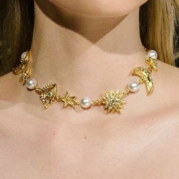 Fleepmart 1 Pcs Women Necklaces Personality Crystal Moon Star Pearl Eye Beaded Gold Short Necklace Fashion Party Wedding Jewelry