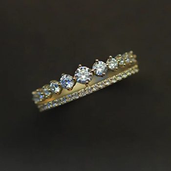 Fleepmart Silver Japanese Simple Double Row Pavé Crystal Ring Women Light Luxury Vintage Party 14k Gold Plating Jewelry Gift