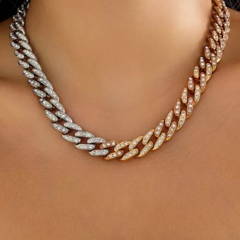 Fleepmart Gothic Mixed Color Heavy Miami Cuban Chain Necklace Hip Hop Exquisite Rhinestone Clavicle Necklace Men’s Punk Jewelry