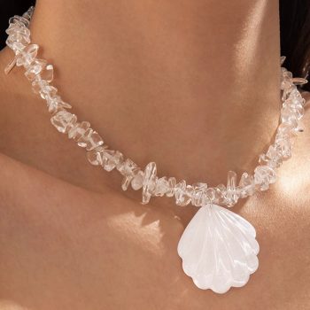Fleepmart Fashion White Colour Irregular Beaded Shell Pendant Necklace Transparent Collarbone Collar for Women Party Jewelry