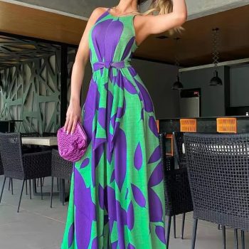 Fleepmart Summer Women’s Clothing New Arrival Amazon Cross-Border Strap Vest Jumpsuit Printed Casual Pants European Style Fashion