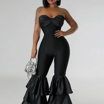 Fleepmart Sexy Ruffle Tube Summer Women Bodysuit Playsuit Elegant Luxury Bodycon Romper Satin Jumpsuit