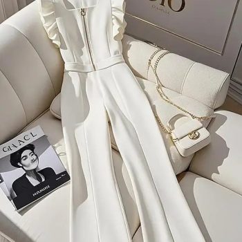 Fleepmart 2025 Women’s Jumpsuit Professional Casual Sexy Style High Waisted Wide Leg Pants High-Quality Drapey White Overalls for Women