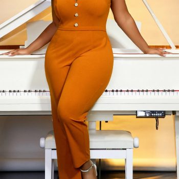 Fleepmart Jumpsuit Sexy Cut Out Chest Slim for Women Buttons Ruffles Party Rompers High Waist Sleeveless Summer One Piece Outfits