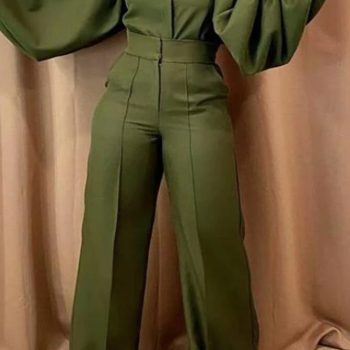 Fleepmart Women Jumpsuit Long Lantern Sleeve High Waist Casual Fashion One Piece Turn Down Collar Female Elegant Office Ladies Rompers New