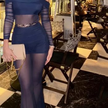 Fleepmart Jumpsuit Women’s Clothes Summer Sexy Fashion Solid Long Sleeve Off Shoulder Semi-Transparent Backless Irregular Rompers