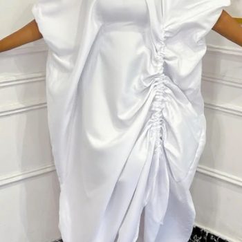 Fleepmart African White Dresses for Women Elegant Shiny Boubou Dresses Traditional Africa Long Loose V Neck Party Event Occasion Female
