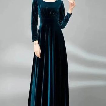 Fleepmart Noble Women’s Clothing Lady’s 2024 Autumn Velvet Long-Sleeved Dress Waist Large Swing Long Dresses