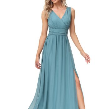 Fleepmart V-neck Sleeveless Evening Dress Women Chiffon Long Party Dress A-line Side Split Robe De Soriee Formal Floor-length Prom Gowns