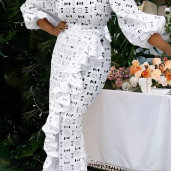 Fleepmart Stylish Vintage White Lace For Women Crew Neck Lantern Sleeve Ruffles Slim Long Gown Formal Evening Celebrate Prom Party Vestido