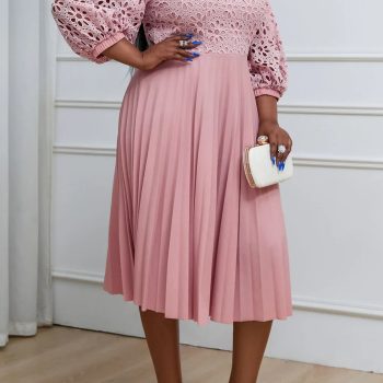 Fleepmart Pink Lace Dresses For Women Half Lantern Sleeve Hollow Out See Through Maxi Dress Summer Party Night Club Large Size Femme Robe