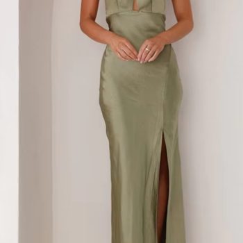Fleepmart Sexy V-Neck Strap Open Back Sleeveless Slim Fit Evening Party Maxi Dress