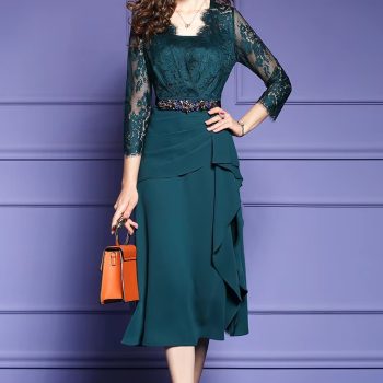 Fleepmart Women Spring & Autumn Elegant Dress Festa High Quality Long Green Cocktail Party Robe Vintage Lace Designer Vestidos