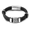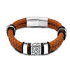 fleepmart 2021 Stainless Steel Irregularly Cracked Bead Bracelet Genuine Braided Leather female Bracelets & Bangles women’s Jewelry
