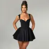 Fleepmart 2025 Summer Lovely A Line Dress Yellow Sexy Party Dresses Hollow Out Lace Up Elegant Holiday Dress Women