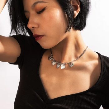 Fleepmart Charming Heart Chain Choker Necklace for Women Silver Color Alloy Metal Tassel Party Jewelry Accessories Collar