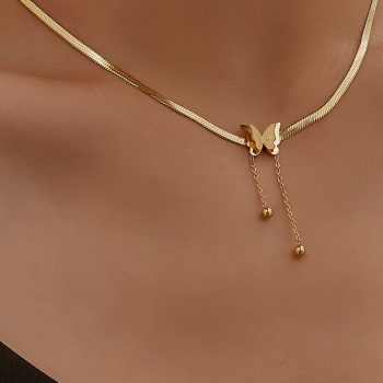 Fleepmart Vintage Butterfly Necklace For Women Gold Stainless Steel Blade Snake Chains Aesthetic Charms Choker Women